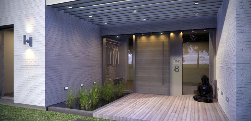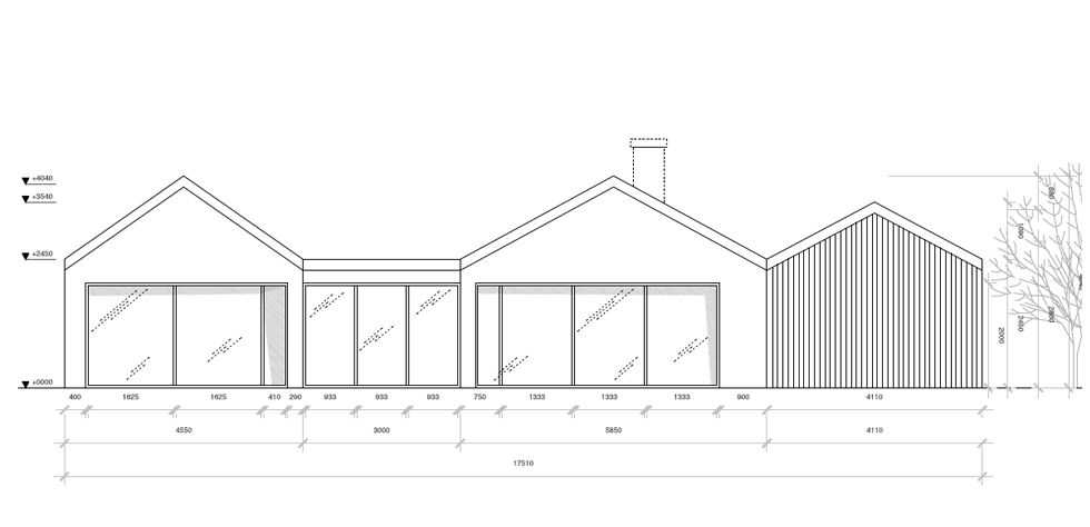 The bungalow is constructed in brick shear walls and a double hump pitched concrete roof with double standing seams zinc cladding. The grey Passo FK 590mm x 40mm long format facade clinker enhances the horizontality of the envelop. Silver grey aluminum louvers provide shade in the loggia. The hidden drain along with the sharp edge, expresses a very strong sculptural form.
