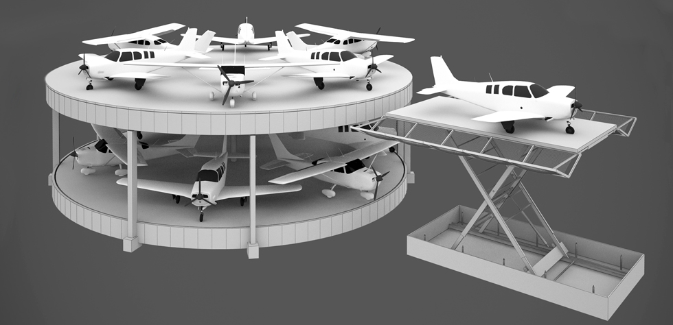“How to park a maximum amount of aircraft on a minimum plot of land?” This question led to a very innovative and functional aircraft hangar solution. Jockeying for position causes delays, damage and high costs in manpower and operations. The cutting edge design for a vertical rotating aircraft parking system not only helps to increase the storage space for aircrafts by 300%, it also allows for a 95% decrease in time spent for parking and retrieval of an aircraft. The removal of a plane from its parking space also quickens by five-folds in this new system. As the leading global specialist for rotating aircraft systems, the system has been recognised and awarded for its innovative design, efficient and cost-effective solution. We provide customised hangar upgrading for any old or new hangar. With our newly developed Skylounge we combine aircraft parking, servicing, flying school, pilot lodging, mediacal aviation services, sky-spa and sky-restaurant for a great new investment opportunity in the aviation industry.