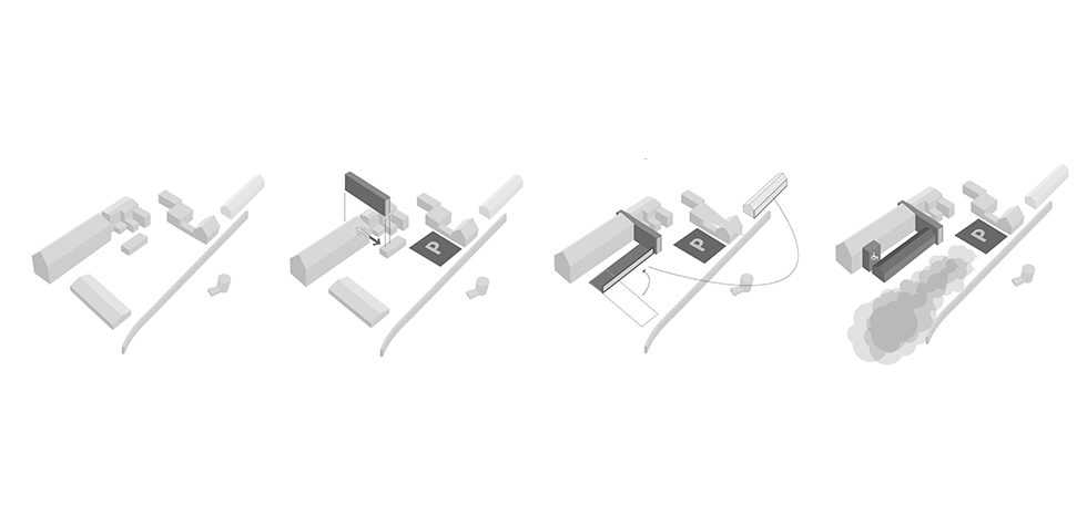 The extension follows in form and height, the architecture of the existing context. The external vertical volume includes ramps, lift and viewing platform with cafe framing the views to the city on the street side and towards the classical temple in the city park on the backside.