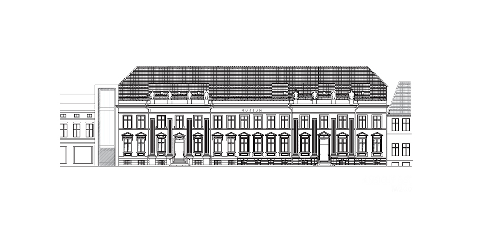 The Schinkel Museum is one of the most important neoclassical buildings in the Fontanestadt of Neuruppin. It holds a wide collection of documents, drawings and artifacts from the work of Karl Friedrich Schinkel as well as a few very rare examples of the „Neuruppiner Bilderbogen“ very popular printed images and reading material from the 18th century. An increasing number of visitors and constantly growing archive since Germany’s re-unification, brings the capacity of the historic monument to its limits. With a parallel building facing the historical city wall, the collection receives an appropriate extension of exhibition space. The existing listed building undergoes a sensitive renovation with M&E upgrade, new heating system, elevator and ramps for wheelchair accessibility.