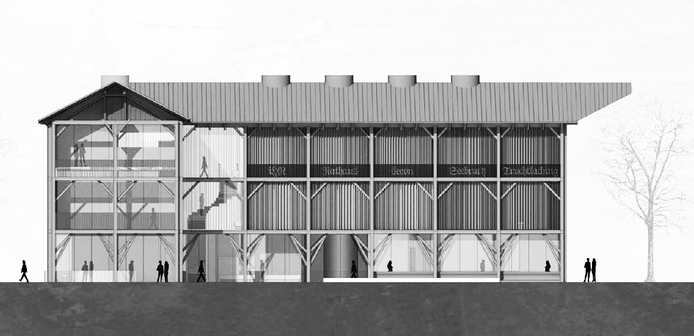 Seebruck is a community in the Bavarian district of Traunstein North of Lake Chiemsee close to the Alps. Three former municipalities Seebruck, Seeon and Truchtlaching form a unified community, whereby Seebruck is the location for a new town hall with integrated offices, exhibition space and tourist information. The design challenges the reinterpretation of the vernacular “Bundwerk” half-timbered house. The timber construction draws on elements of the context with its long form, wall paintings and wood carvings. With closed wooden louvers different motifs of modern bavarian “Lüftlmalerei” of St.Nepomuk, Romans and Celts become visible, which gives the work of the council, the mayor and the administration a worthy and appropriate building expression.