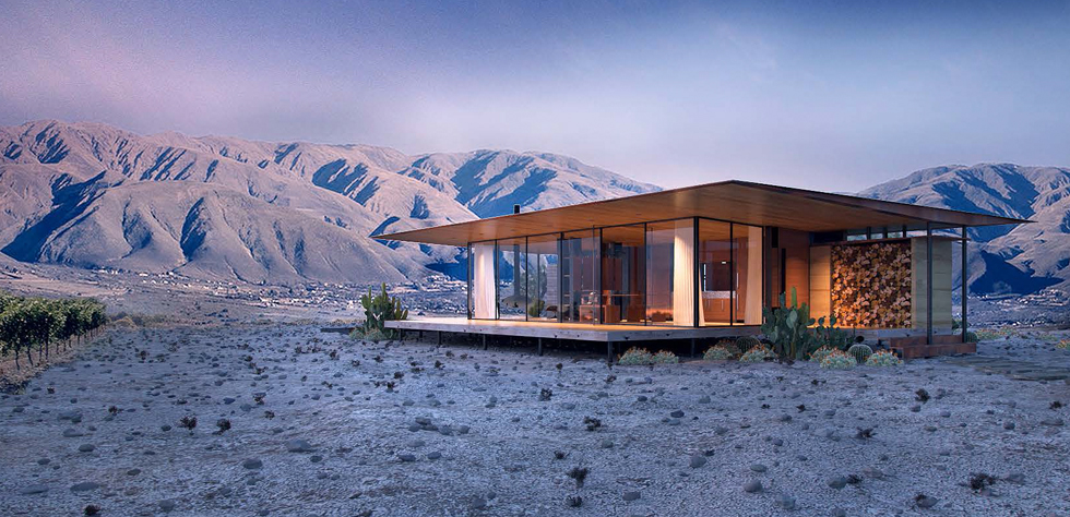The environment is a growing concern. If carefully designed, living in a small space reduces the impact on the environment and construction costs. Surrounded by magnificent landscapes of the Andes, this beautiful and remote vacation double room cabin provides all facilities for sustainable living off the grid. Casa Tucuman is a modern zero energy home without future energy, water and gas bills. Materials are chosen for their regenerative and recyclable capabilities emphasizing on renewable energy and a careful integration of the building in the context. A notable example of how design can transform a small space into a comfortable, modern and environmentally sensitive home, where the main emphasis is on the experience of nature. Full floor to ceiling windows allow the maximum integration of the surrounding landscape into the house during all seasons.