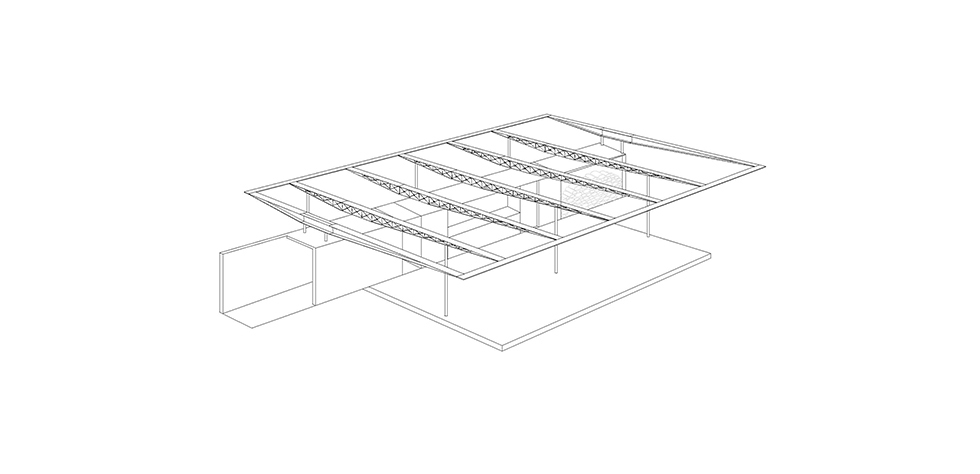 Made from a simple palette of materials, mainly pine wood and mild steel as well as recycled timbre cladding the house is raised above the flooding mark. The widespread roof provides shade for the visitors in the hot summer season, whilst the upward kink frames the view of the vineyards in front and serves as a rain water and photo voltaic sun catchment area. Water heater, water filter and batteries are part of the storage facility. The large terrace and pool invite to linger.