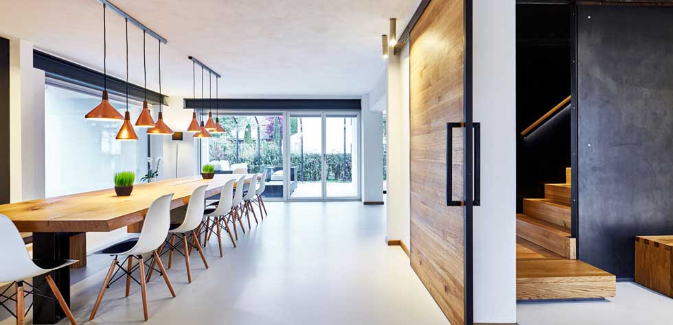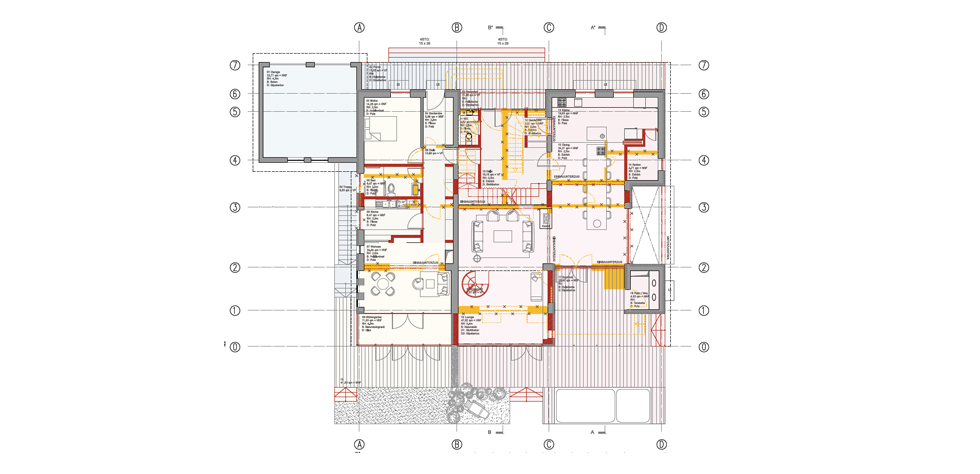 Rising building cost for the implementation of the new Energy Conservation Regulation have led to the renovation and modernization of existing single family houses. Built in 1975, the alteration of this project provides a gym, SPA and office area, whereby kitchen, dining and living become one universal space with flexible wall systems. An efficient central wood stove support the general underfloor heating systems.